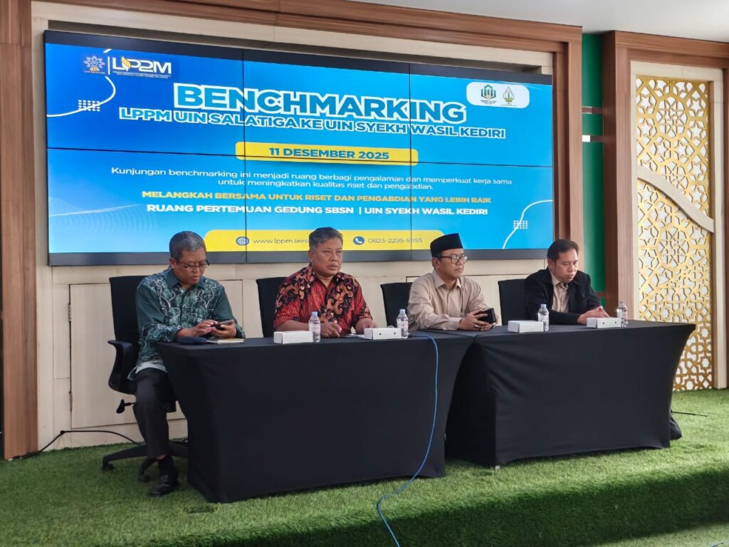 Lembaga Penelitian dan Pengabdian kepada Masyarakat (LP2M) UIN Salatiga melakukan benchmarking ke Lembaga Penelitian dan Pengabdian kepada Masyarakat (LP2M) UIN Syekh Wasil Kediri , dengan Tujuan Pertama tentang Managerial dan Tata Kelola LP2M, kedua tentang Inovasi Dan Layanan Pusat Bantuan Hukum dan Biro Konsultasi Huku dan ketuga tentang Inovasi dan Layanan Kantor Urusan Internasional.. Kunjungan ini diterima langsung oleh Dr. TAUFIK ALAMIN, M.Si. selaku Ketua UIN Syekh Wasil Kediri pada Kamis, 11 Desember 2025. Pemilihan UIN Syekh Wasil Kediri sebagai lokasi benchmarking bukan tanpa alasan. UIN Syekh Wasil Kediri dinilai memiliki inovasi serta pengembangan program internasional yang signifikan, sehingga dapat menjadi rujukan bagi UIN Salatiga untuk memperkuat kiprah internasionalnya. selanjutnya Dr. Taufik Alamin juga aktif dalam mendorong peningkatan kualitas penelitian dan pengabdian masyarakat di lingkungan kampus, termasuk mengelola publikasi ilmiah, seperti jurnal dan buku ajar, serta mengawasi pelaksanaan Kuliah Kerja Nyata (KKN). Ia juga berperan dalam memperkuat akreditasi jurnal ilmiah di UIN Syekh Wasil Kediri, dengan target meningkatkan jumlah jurnal terakreditasi Sinta. Selain itu, beliau terlibat dalam berbagai kegiatan kolaborasi akademik, seperti KKN Persemakmuran dan kerja sama dengan institusi lain, serta mempromosikan moderasi beragama dan kerukunan umat melalui program-program LPPM.
