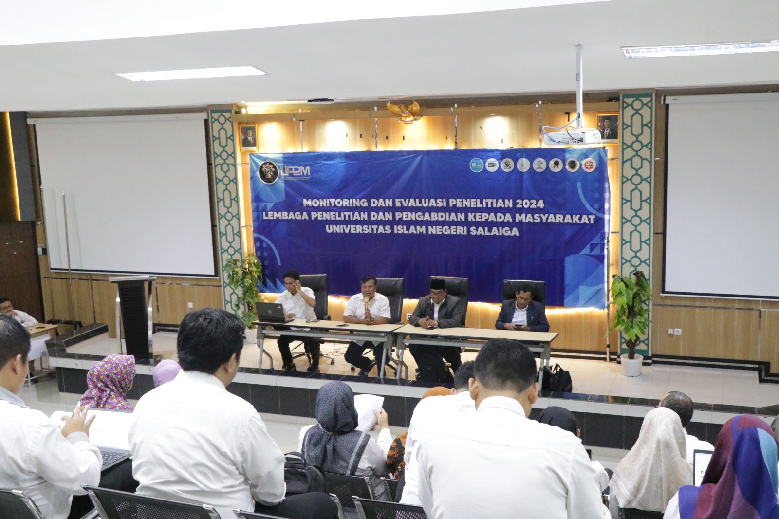 Senin, 09 Desember 2024, bertempat di Auditorium Lantai 3 Gedung KH. Hasyim Asyari Kampus 3 UIN Salatiga, diadakan kegiatan monitoring dan evaluasi hasil penelitian tahun 2024. Karena banyaknya jumlah peneliti, maka LP2M membagi kegiatan menjadi menjadi empat kelompok diikuti oleh 25 orang perwakilan masing-masing judul penelitian.