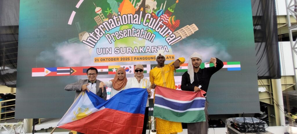 Surakarta — Tiga mahasiswa internasional dari UIN Salatiga turut berpartisipasi aktif dalam kegiatan International Cultural Presentation yang diselenggarakan oleh UIN Raden Mas Said Surakarta pada Selasa, 21 Oktober 2025. Ketiga mahasiswa tersebut adalah Abdulatip Kanjang dari Filipina, Mafu Cessay dari Gambia dan Ebrahim Hasan dari Yaman. Acara ini menjadi wadah penting bagi mahasiswa dari berbagai negara untuk memperkenalkan dan merayakan keanekaragaman budaya dunia dalam suasana akademik yang inklusif dan kolaboratif.