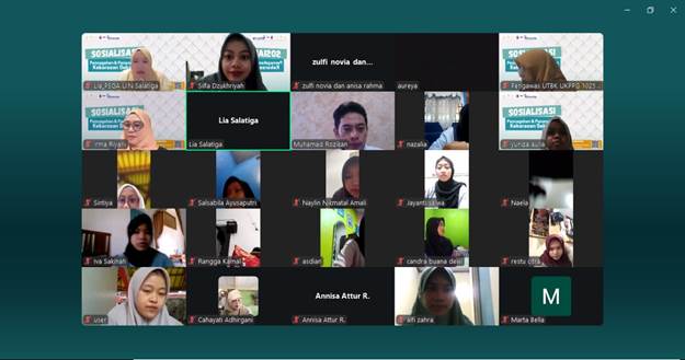 Pusat Studi Gender dan Anak (PSGA) UIN Salatiga menggelar kegiatan Sosialisasi Pencegahan dan Penanganan Kekerasan Seksual (PPKS) pada Jumat (14/11) melalui platform zoom meeting. Acara ini diikuti sekitar 100 peserta yang terdiri atas mahasiswa, dosen, serta tenaga kependidikan.