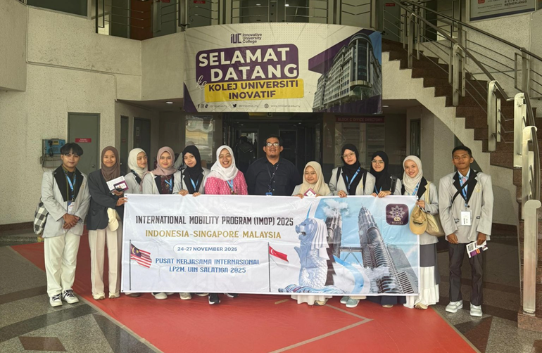 SELANGOR— Sebanyak 10 mahasiswa Universitas Islam Negeri (UIN) Salatiga yang dipimpin oleh Kepala Pusat Kerjasama Internasional LP2M UIN Salatiga, Ibu Marisa Fran Lina, M. Pd. mengikuti rangkaian International Mobility Program (IMoP) 2025 melalui kunjungan resmi ke Innovative University College (IUC) Malaysia, Selangor, Rabu (26/11/2025). Rombongan disambut oleh tiga perwakilan utama IUC, yakni Muhammad Adiy Bin Mohd Bukhori selaku Senior Assistant Registrar, Hairul Hisam Bujang selaku Deputy Vice Chancellor Academic (Undergraduate), serta Dr. Azihan Binti Othman sebagai Postgraduate Coordinator.